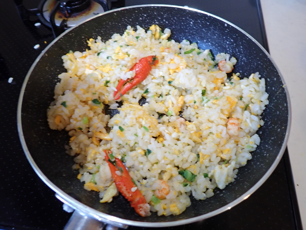 今回はこのアメリカザリガニを使ってチャーハンを作りました。作り方は次のようになります。