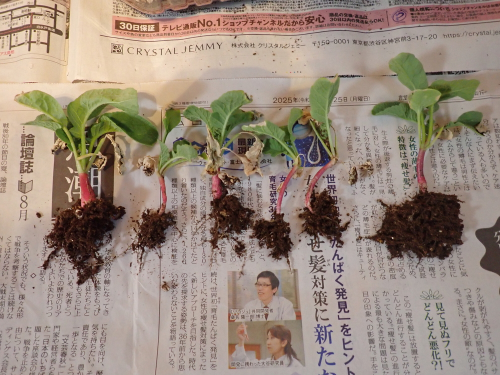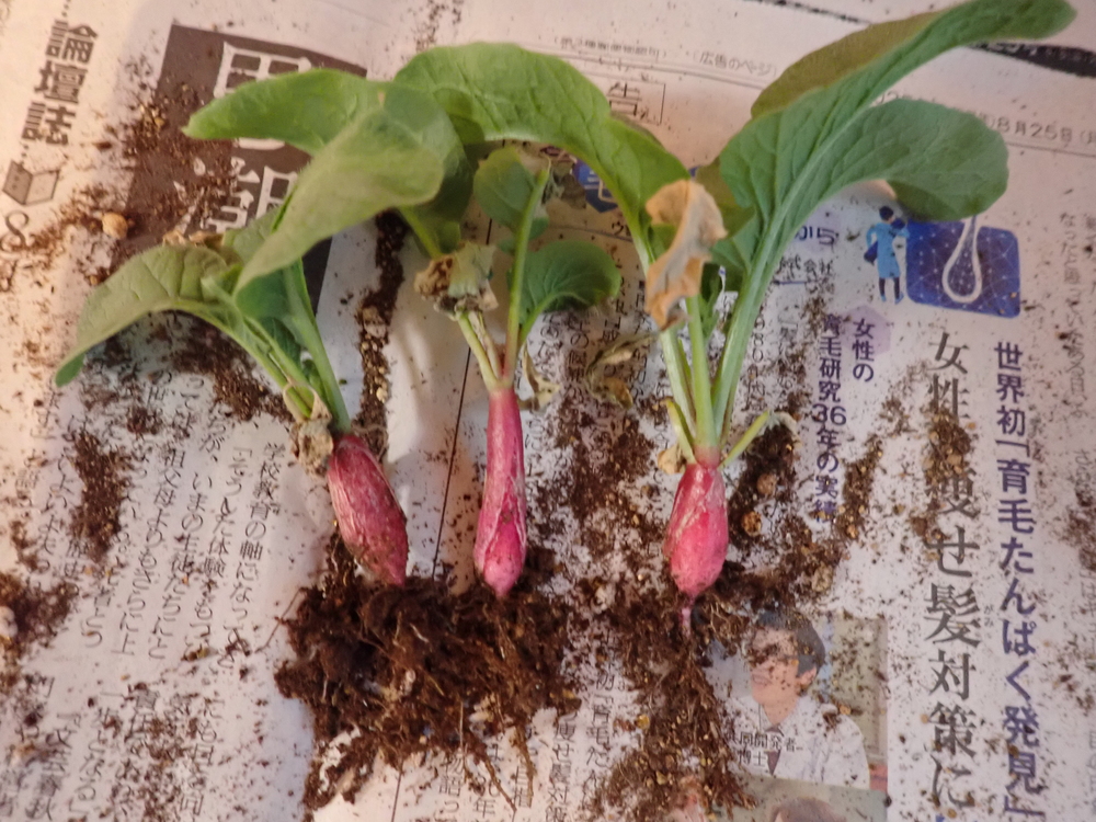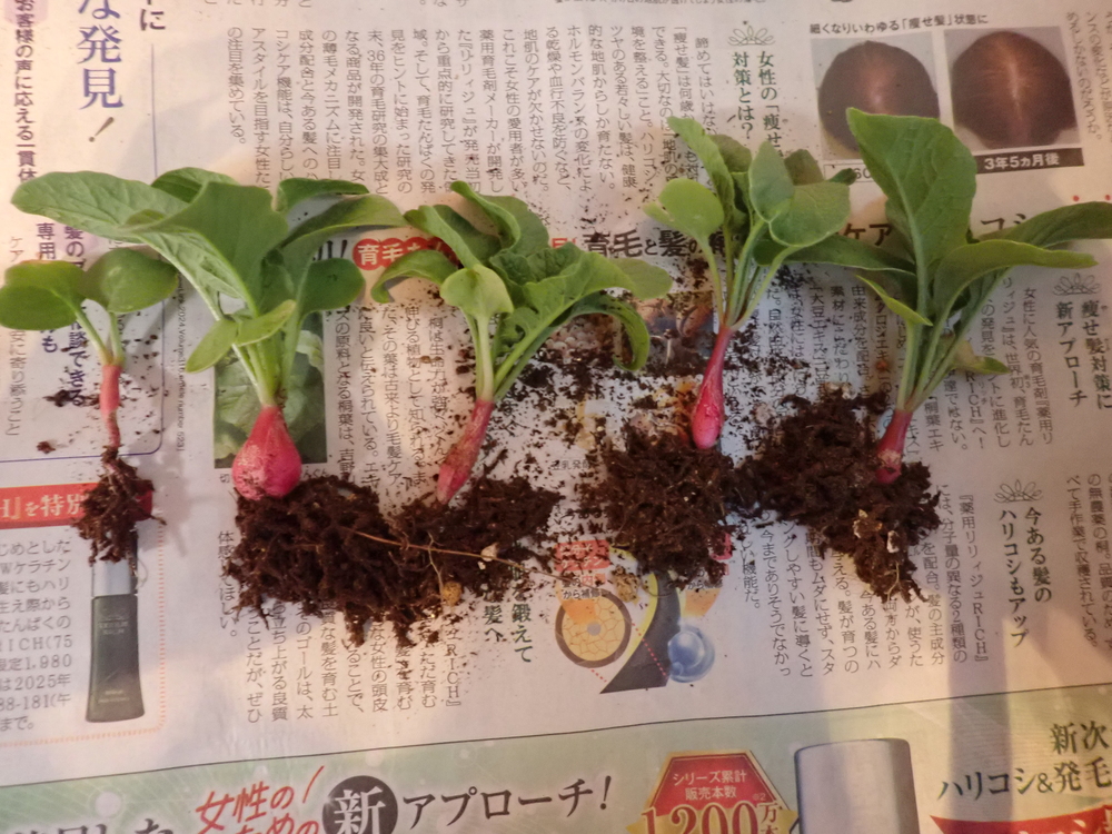 スクミリンゴガイの殻に肥料としての価値があるのかどうか、ハツカダイコンを使って調べました。