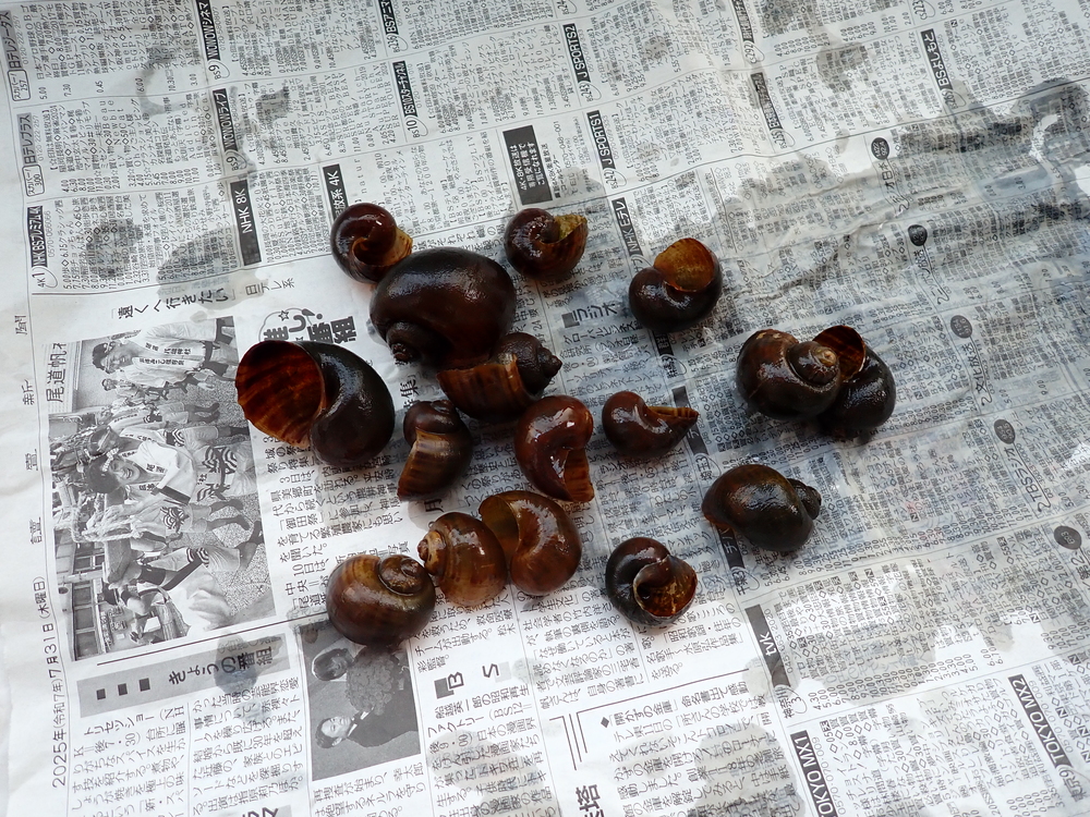 最初に肥料として活用する外来生物は、田んぼや水路などで大量に繁殖してしまっているスクミリンゴガイです。