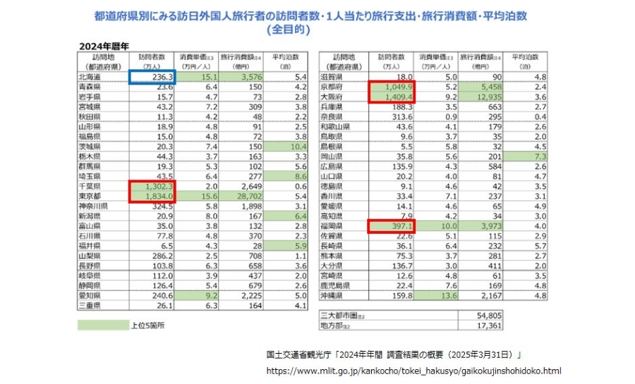 | (1位)東京都 | 外国人旅行者数の最も多い都道府県は東京都で年間1,834万人が訪れます。