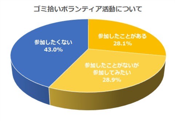 Q3の結果からゴミ拾いボランティア活動に「参加したくない」と考えている人は全体の4割以上を占めていることがわかりました。また、全体の7割以上の人が今までにゴミ拾いボランティア活動に参加したことがないことがわかりました。 ゴミ拾いボランティア活動 に参加すると、環境保全に協力できたことを実感すると共に、「気づきの力」が養われるというメリットがあるため、ゴミ拾いボランティア活動に参加してもらうためのきっかけを作る必要があると考えます。