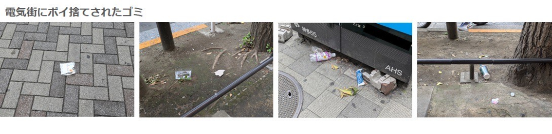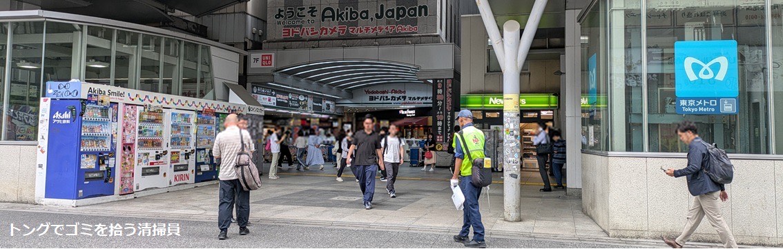 千代田区のビブスを着用した清掃員がトングで1つ1つゴミを拾っている姿が見られました。一人が1つだけなら大丈夫と思って捨てたゴミでも積み重なると多量になり、トングで1つずつ拾う作業は非常に手間がかかり大変そうだと感じました。