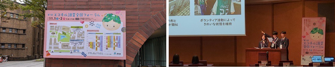 その方法として、イベントへの参加や発表、SNSでの情報発信などが挙げられます。そこで私たちは、環境省主催の「エコチル調査全国フォーラム」に参加し、スライドを用いた口頭発表を行いました。このイベントを通して、多くの人に観光地のゴミ問題を伝え、行動につなげるきっかけをつくることができたと考えています。