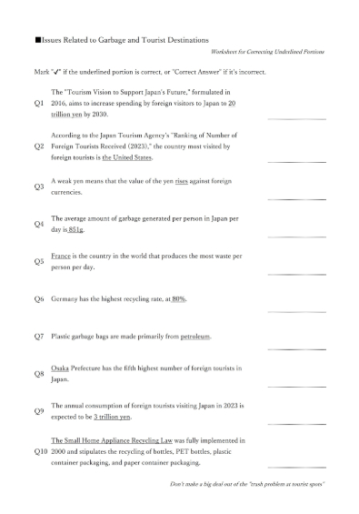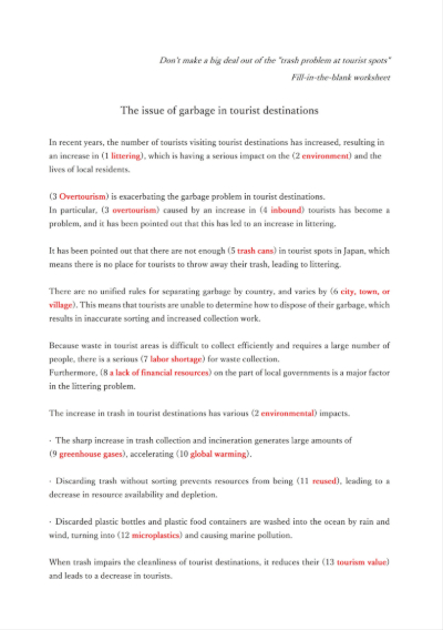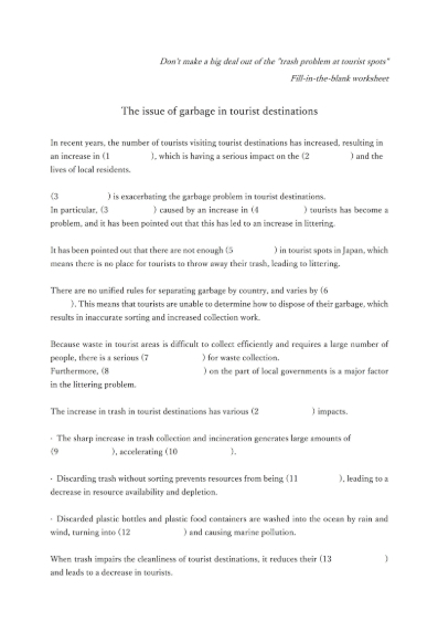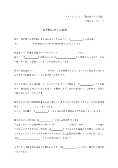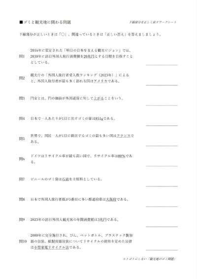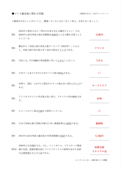 観光地とゴミについての情報を確かめる際に使用してください!!