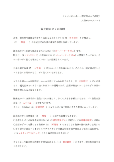 【問題】穴埋めワークシート 【解答】穴埋めワークシート