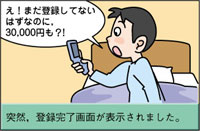 うまい話とあやしいサイトに注意! いつの間にか危険なサイトにつながってしまい,身に覚えのない請求をされた場合は,必ずすぐに大人に相談をしましょう。 |