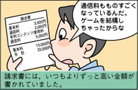 ネット料金高い 使いすぎ! 長電話,Webサイトの見すぎ,メールの使いすぎ,音楽データなどのダウンロードのしすぎで,驚くほど高い利用料金が請求されることがあります。 |