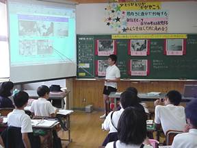 ・児童の考えをより分かりやすく伝えるために、口頭で発表するだけでなく、できるだけ液晶プロジェクタで映したディジタルコンテンツを指しながら説明できるようにする。