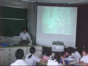 ○グループごとに観察法を再度確認したり、観察した細胞分裂の様子をその場で全体へ提示できるように顕微鏡やノート型コンピュータを使えば、さらに授業効果を高めることになる。