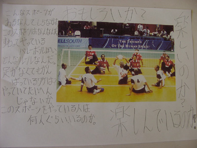 ○生徒相互の発表を通して、ディサビリティ・スポーツの可能性や今後の展望について考えさせ、目的意識や相手意識をもった言語活動を行う。
