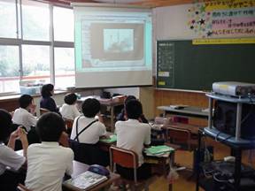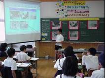 ・スクリーンや板書を使って児童が説明する際、ディジタルコンテンツと地図とを対応させて指し示すようににする。