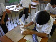 その後、自分たちの作品を紹介しあう事により、他の作品のよさを知り、立体造形のおもしろさの理解を深めてもらう。