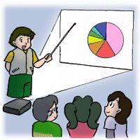 プロジェクターで発表する。