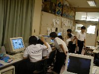 コンピュータの操作をみんなで教えあいながら進めていく