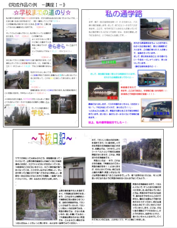 ・宿題にしていた完成イメージ(書き込む文章も)を元にして、ワープロソフト等の文書作成ソフトへ「通学路紀行」の文章を入力していく。